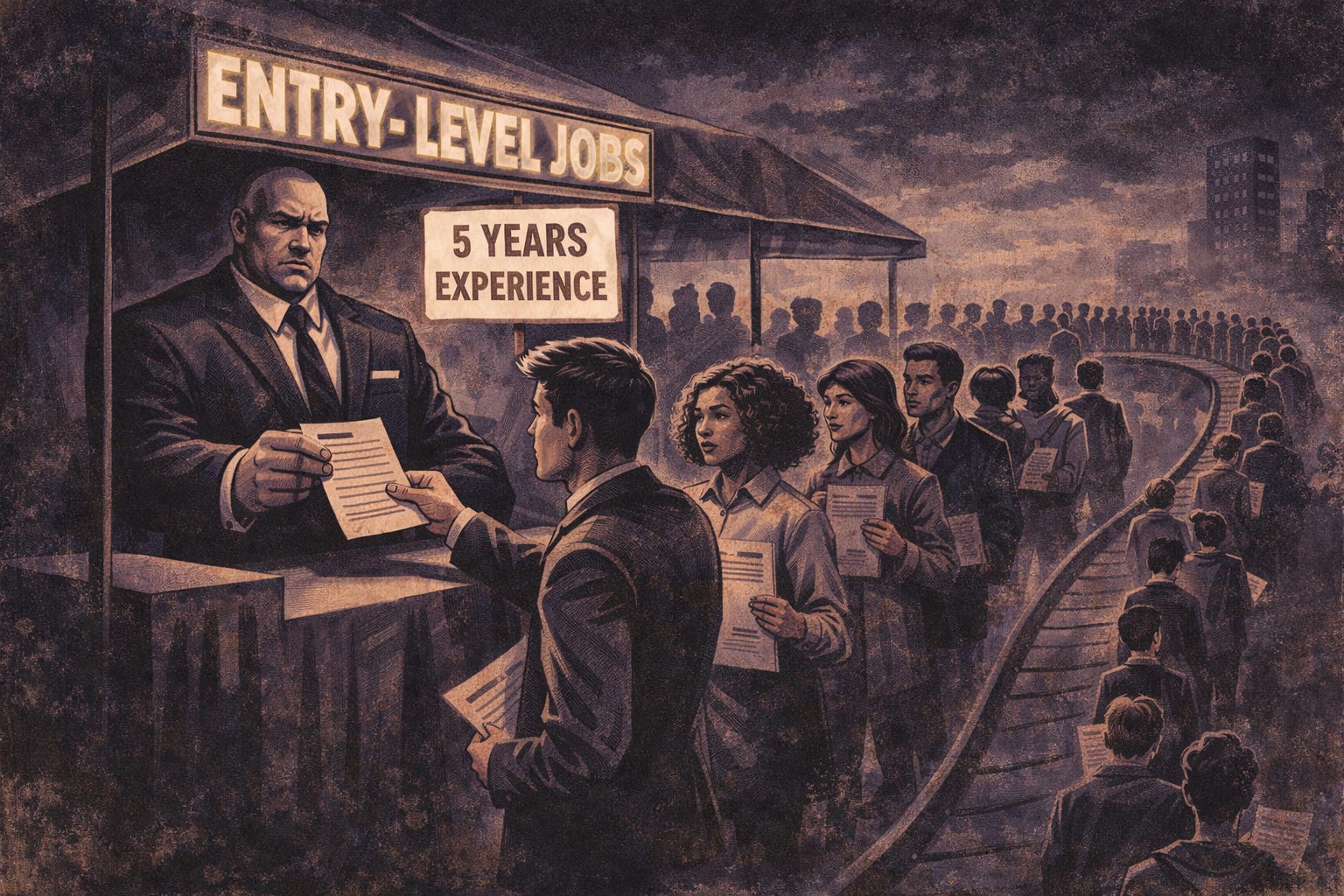 Welcome to the entry-level job market. The door is closed. The handle was removed in 1996. The sign still says “entry” because no one has taken it down yet.