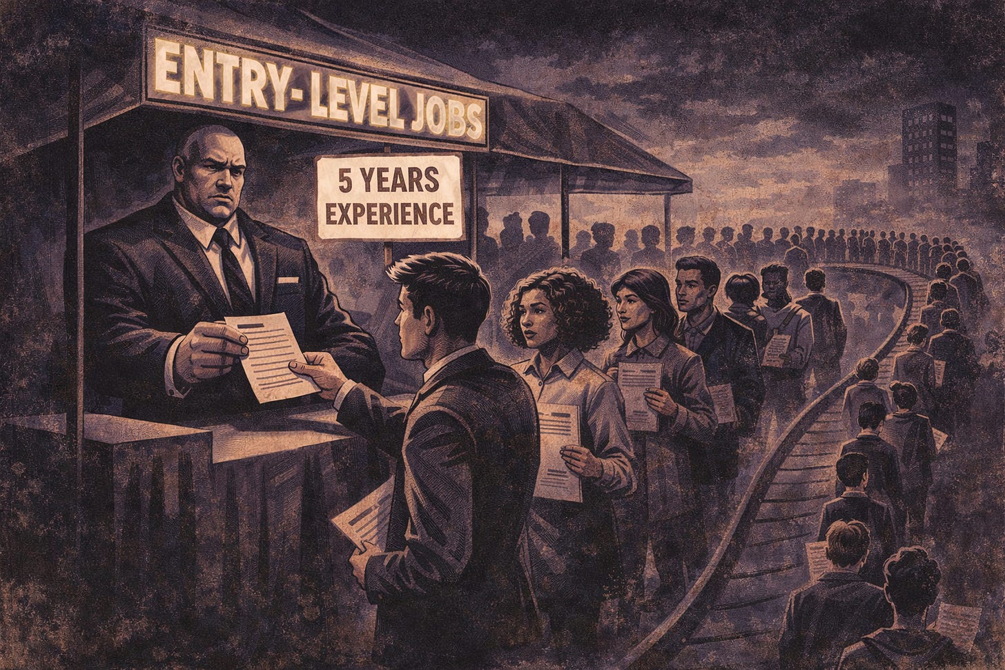 Your grandparents could walk into a bank with a high school diploma, get trained on the job, and become managers. Your parents got college degrees that led to corporate training programs that built careers. You? You need five years of experience for entry-level positions, receive no training, and face a decent chance of being underemployed for the next decade. The entry door didn’t disappear; it was locked from the inside.